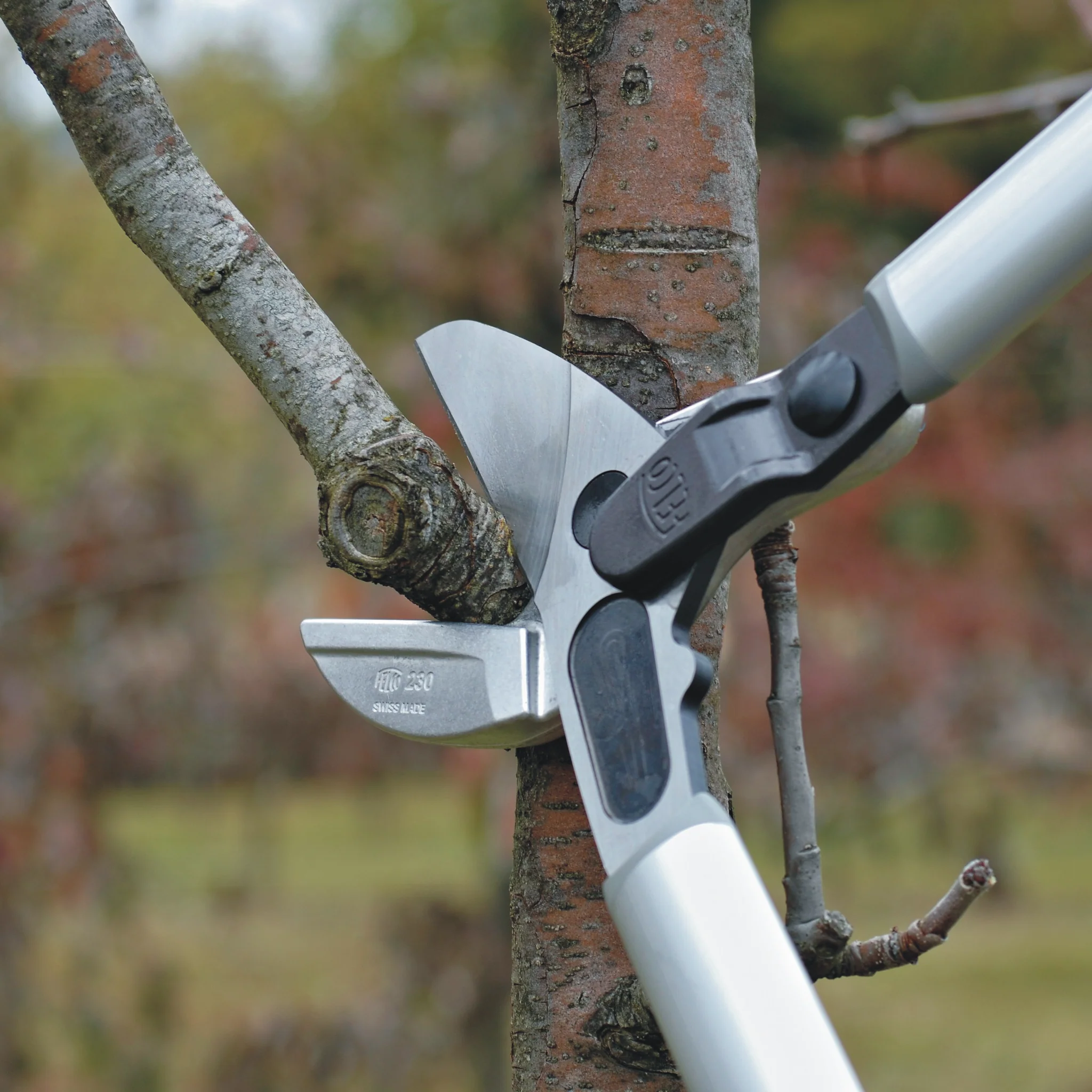 Bei FELCO kommt jeder Astschere die gleiche Bedeutung in unserer Produktfamilie zu. Jede ist individuell und bietet spezifische Vorteile, um zu den verschiedenen Schnittbedürfnissen unserer Benutzer zu passen. Wir freuen uns, wenn sie mit Wertschätzung behandelt werden und in gute Hände gelangen. Die FELCO 230 Astschere ist für die Anwender bestimmt, die nach leichtem Komfort und dem Gefühl von Kraft suchen. Dank des Kraftübersetzungssystems bietet sie mehr Kraft – ganze 65 %, um genau zu sein. Mit dem geraden und spitz zulaufenden Schneidkopf aus Klinge und Amboss werden Sie selbst in härtestem Holz kraftvolle Schnitte durchführen können. Mit der Klingenspitze bzw. der gesamten Klingenlänge sind präzise Schnitte ein Kinderspiel. Ganz egal, wie hoch hinaus Sie mit den 80 cm langen Griffen reichen, Sie werden die vorbildlichen Funktionen der FELCO 230 lieben!